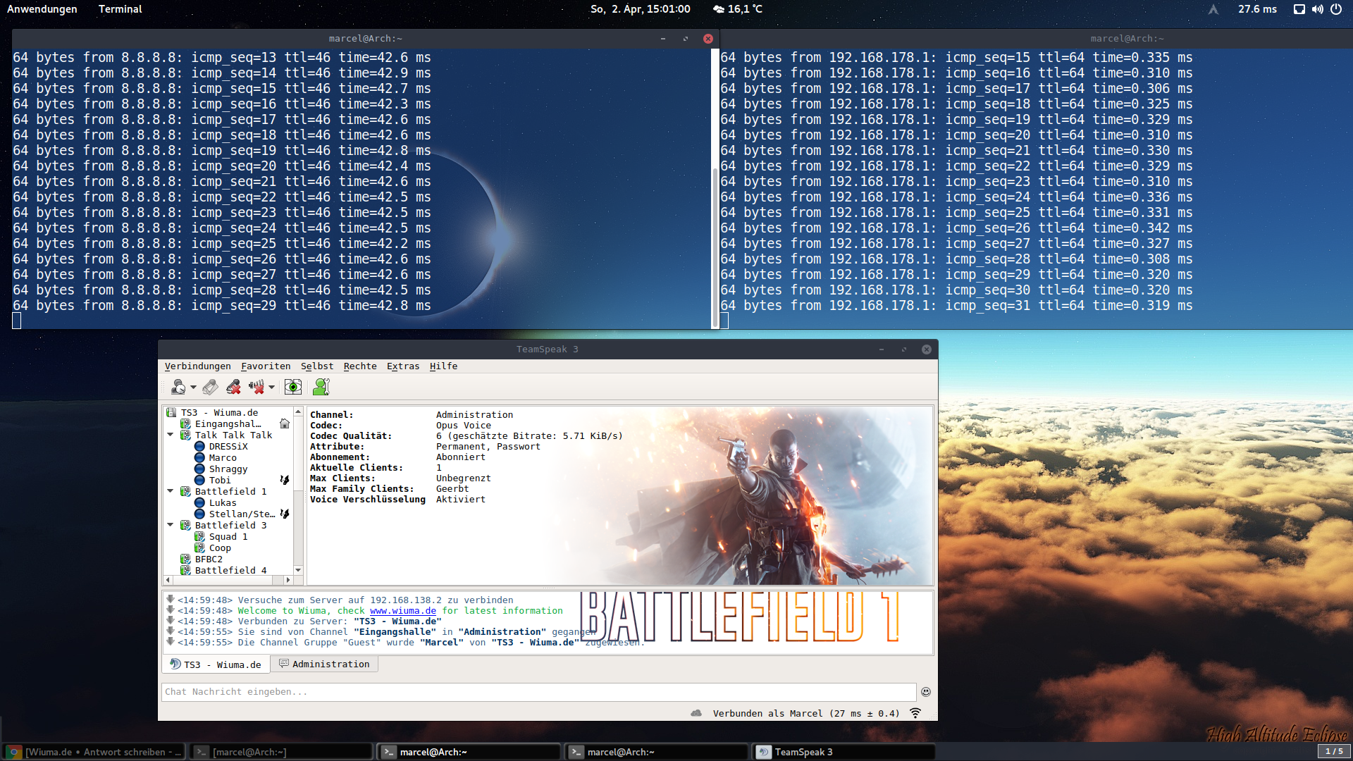 das ist an mein PC über lan,Marc3l hat geschrieben:Auf dem Screenshot sieht es eigentlich gut aus. Was zeigt da der Teampeak für einen Ping an?